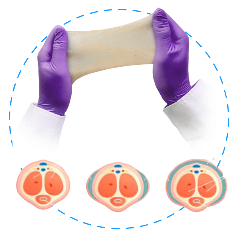 Matriz monocapa porosa de colágeno, colocada alrededor del miembro viril, la cual posteriormente el cuerpo la reemplaza por tejido propio, brindando una apariencia natural.